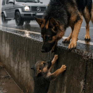 “I Stopped My Car in the Pouring Rain to Help a Desperate German Shepherd—But When I Lifted Her Injured Puppy, What She Did Next Left Me Frozen on the Roadside”