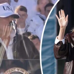 Melania Trump and her husband, Donald, appeared at an event celebrating 250 years of the Navy on Sunday. While many were annoyed that the president arrived an…